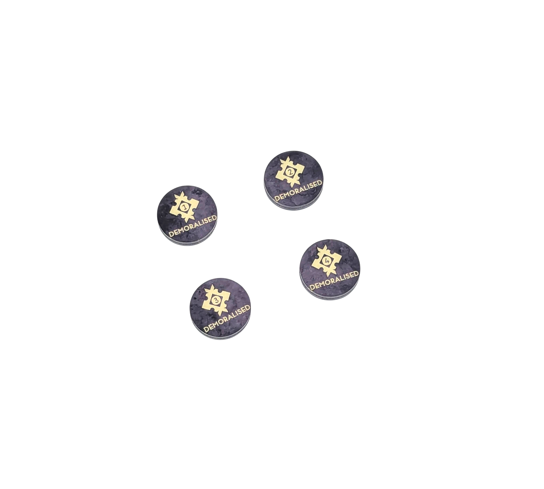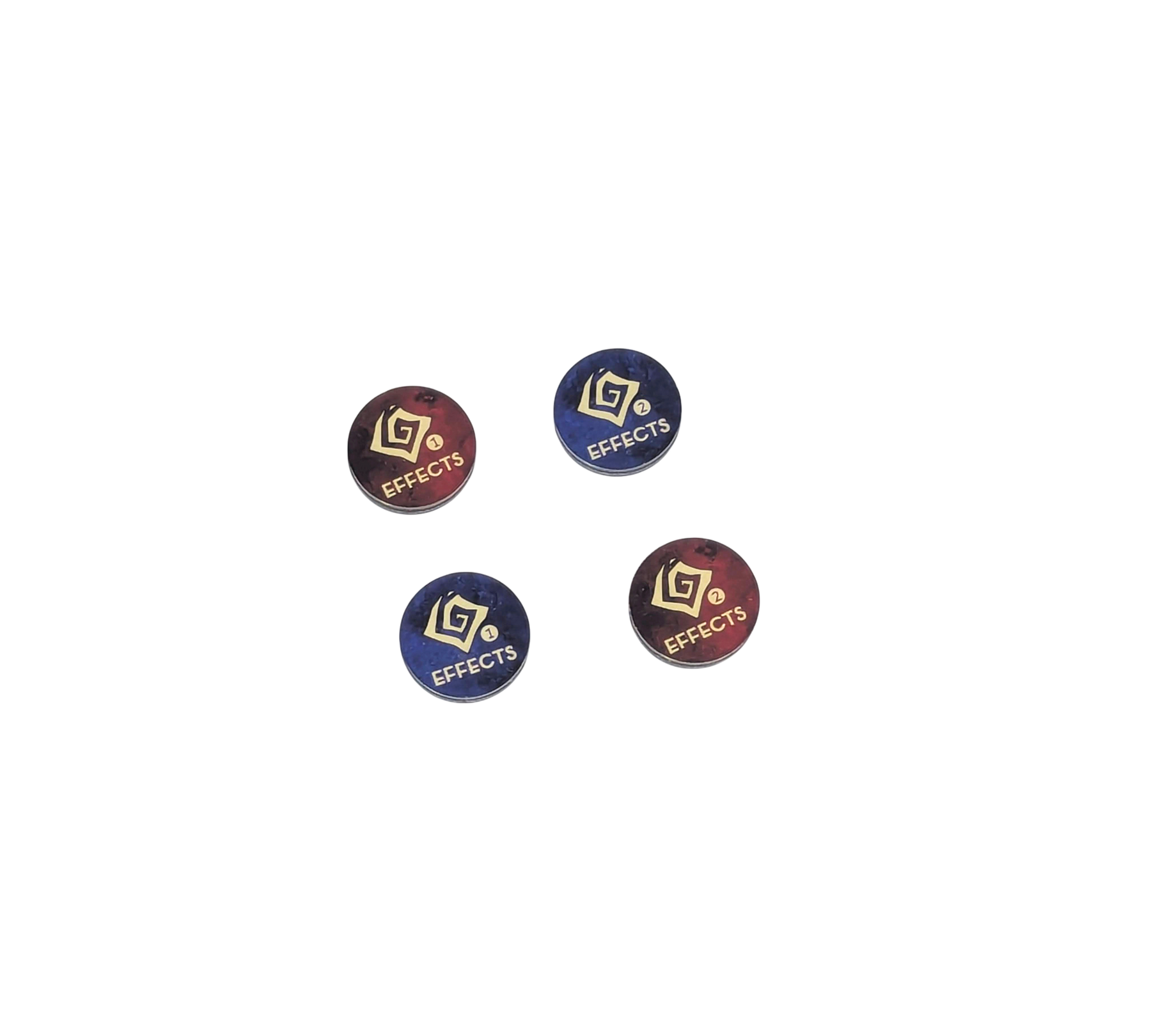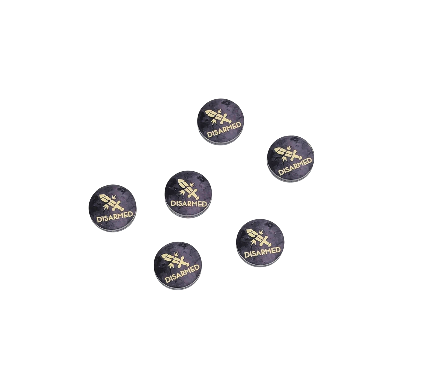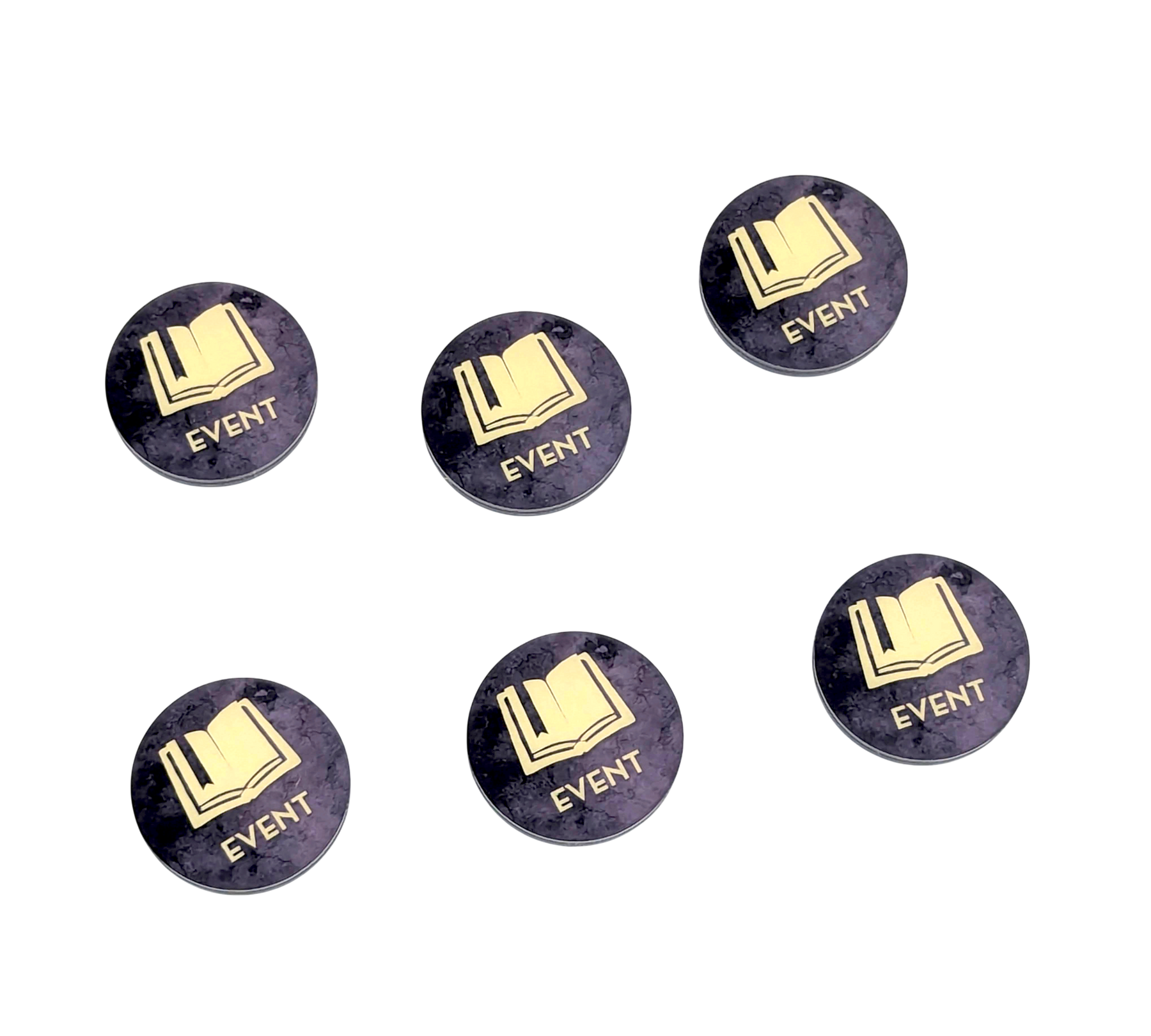 Printed in full HD colour at 300 DPI, layered between 2 sheets of crystal-clear 1.5mm acrylic sheet (total thickness 3mm), these tokens will pop right off the table. The print is both secure and protected between these layers.