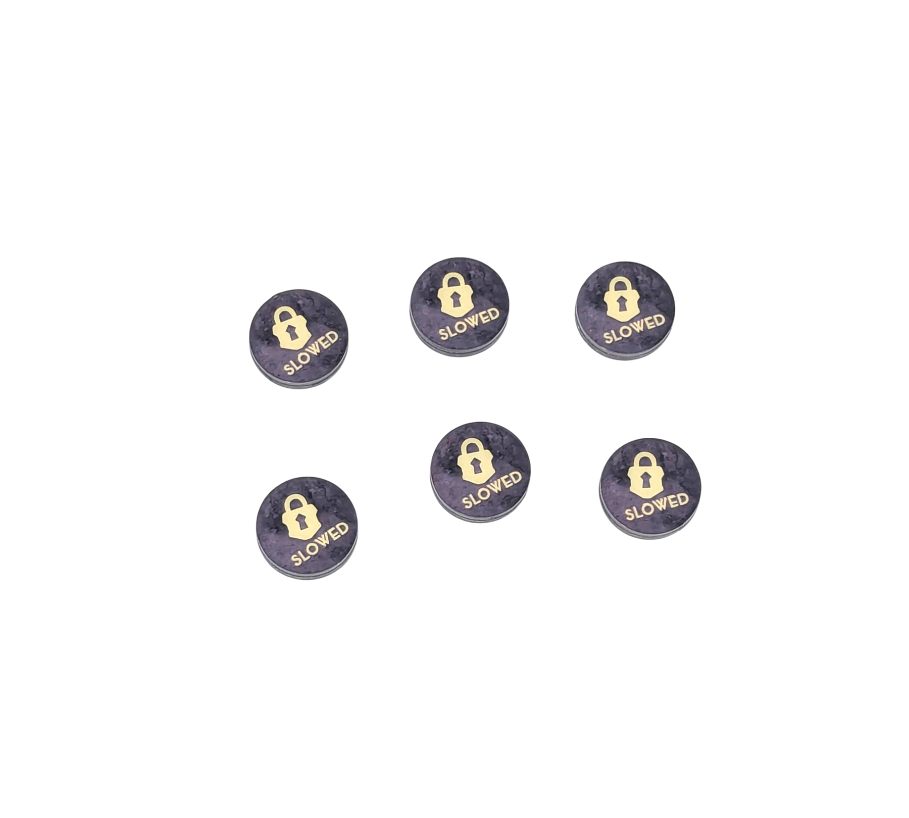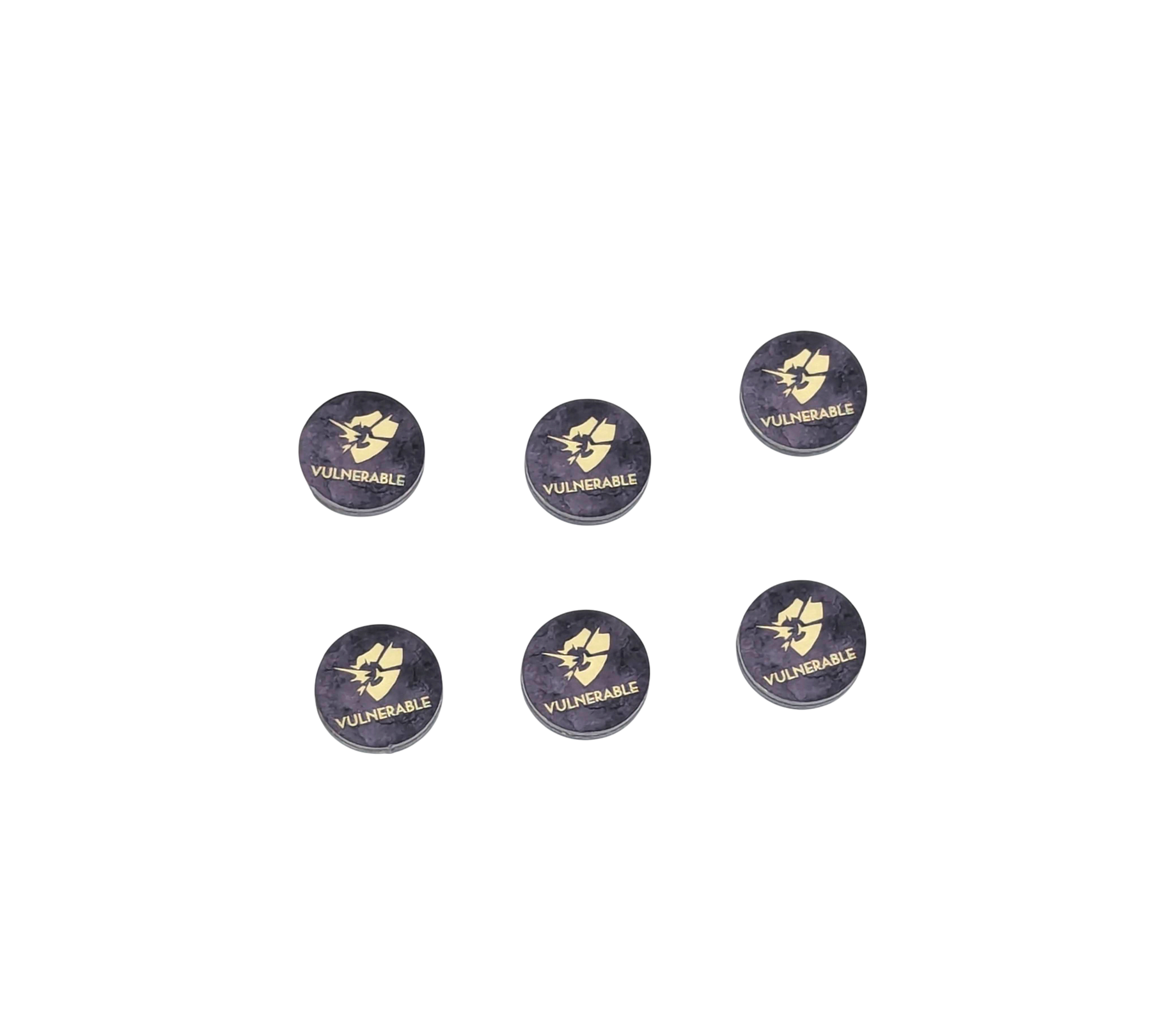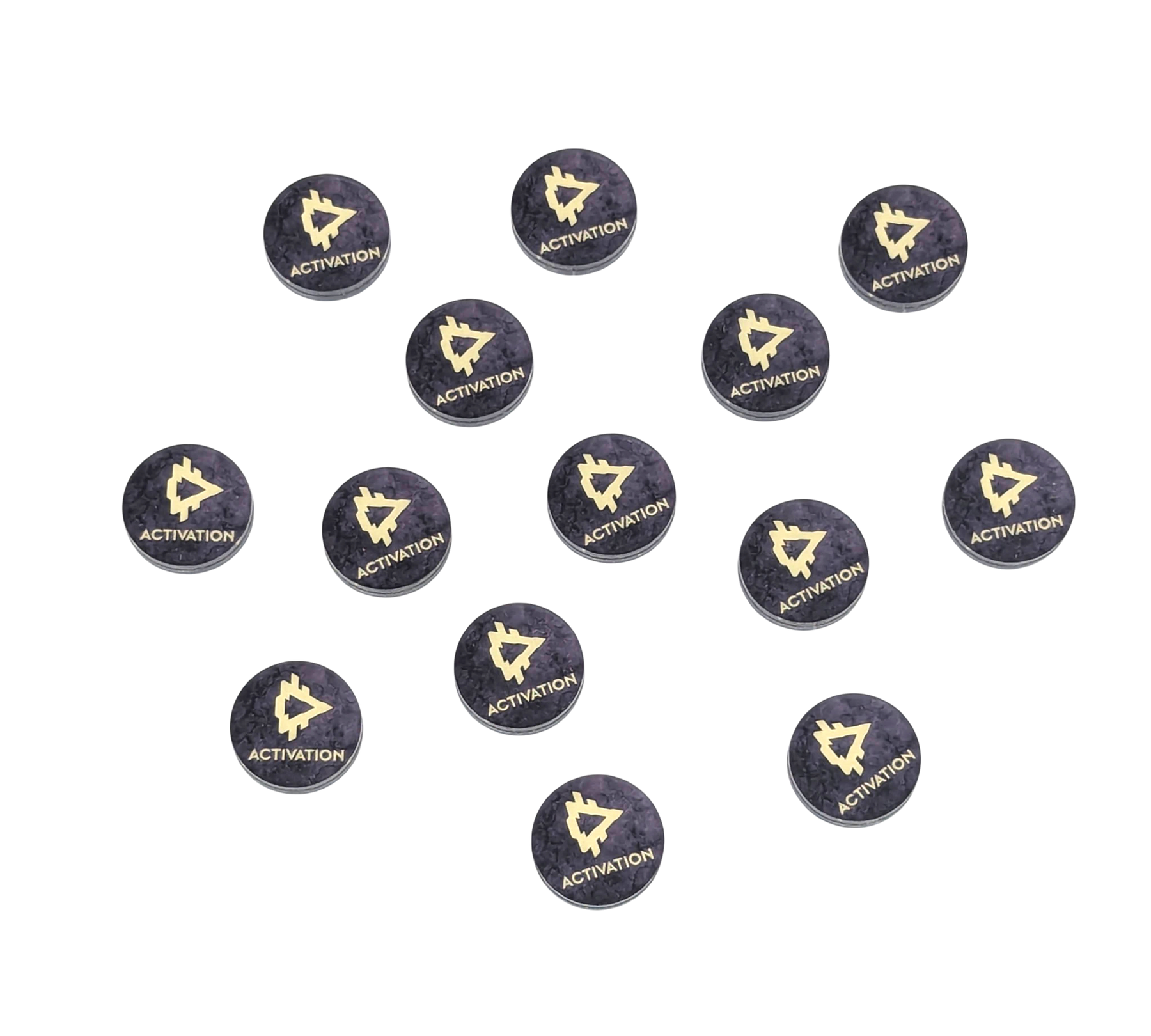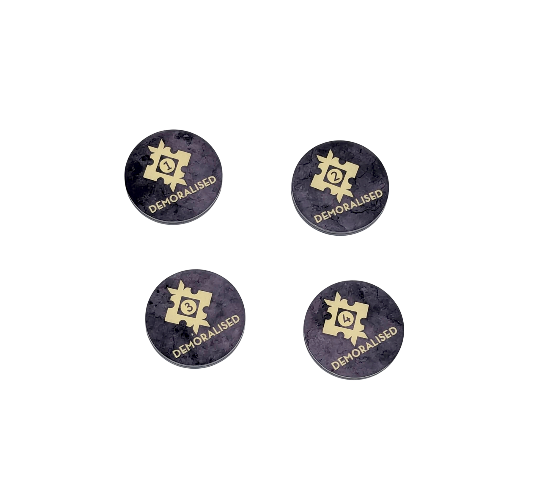Printed in full HD colour at 300 DPI, layered between 2 sheets of crystal-clear 1.5mm acrylic sheet (total thickness 3mm), these tokens will pop right off the table. The print is both secure and protected between these layers.