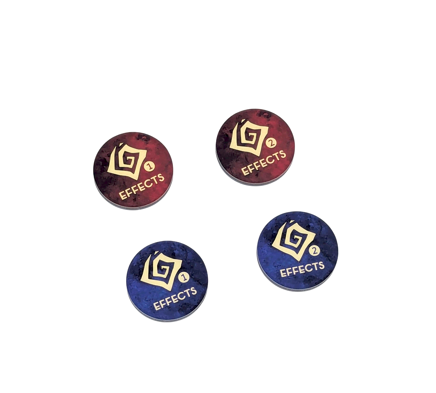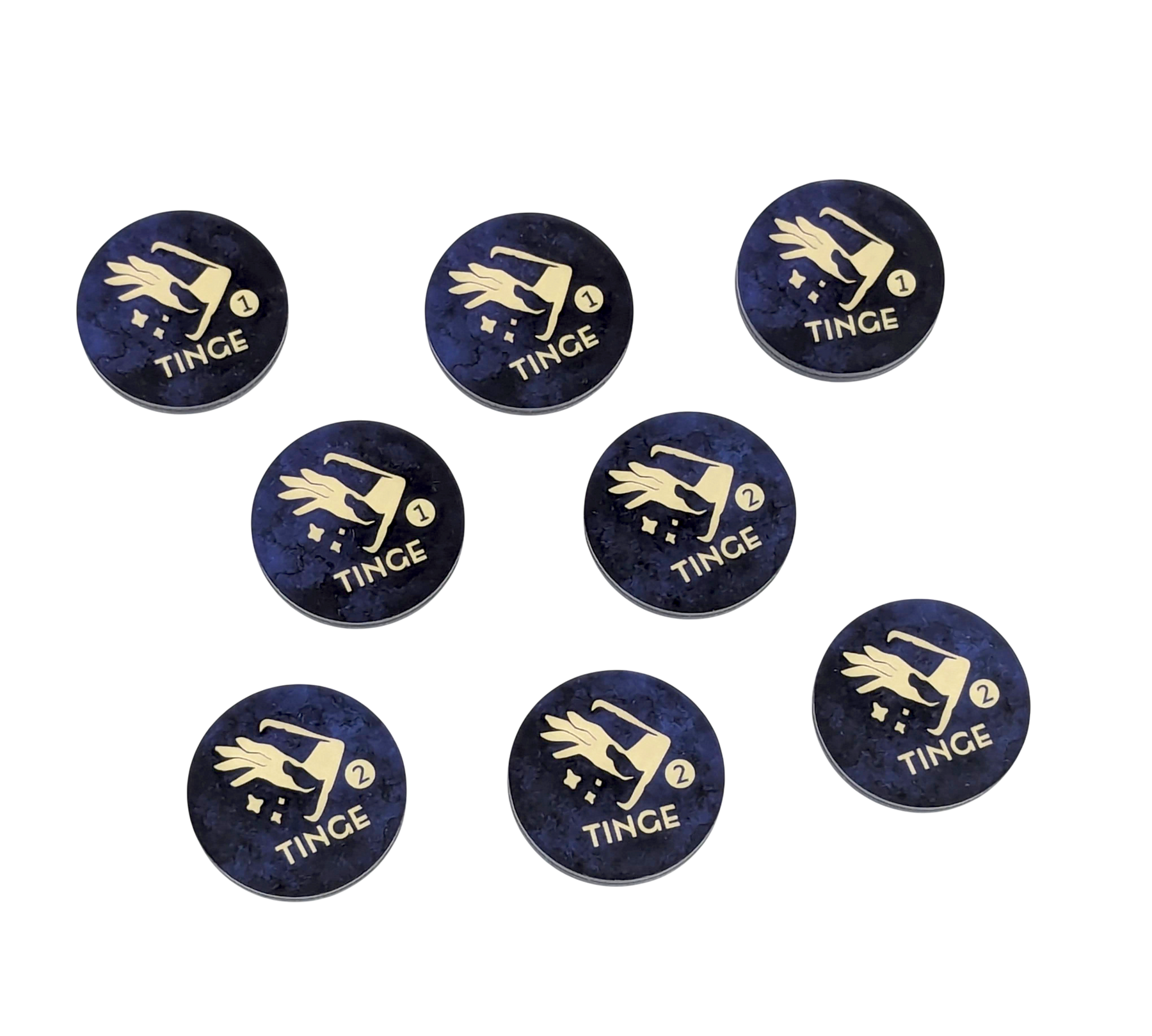 Being double-sided for both aesthetics and functionality (some tokens require different sides for gameplay), we've made sure they are fully compatible with the game system.