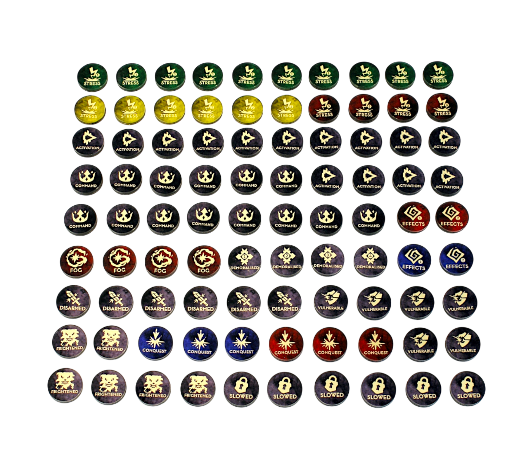 Upgrade your Warcrow Winds from the North by Corvus Belli with this compatible 139-piece token set bundle.