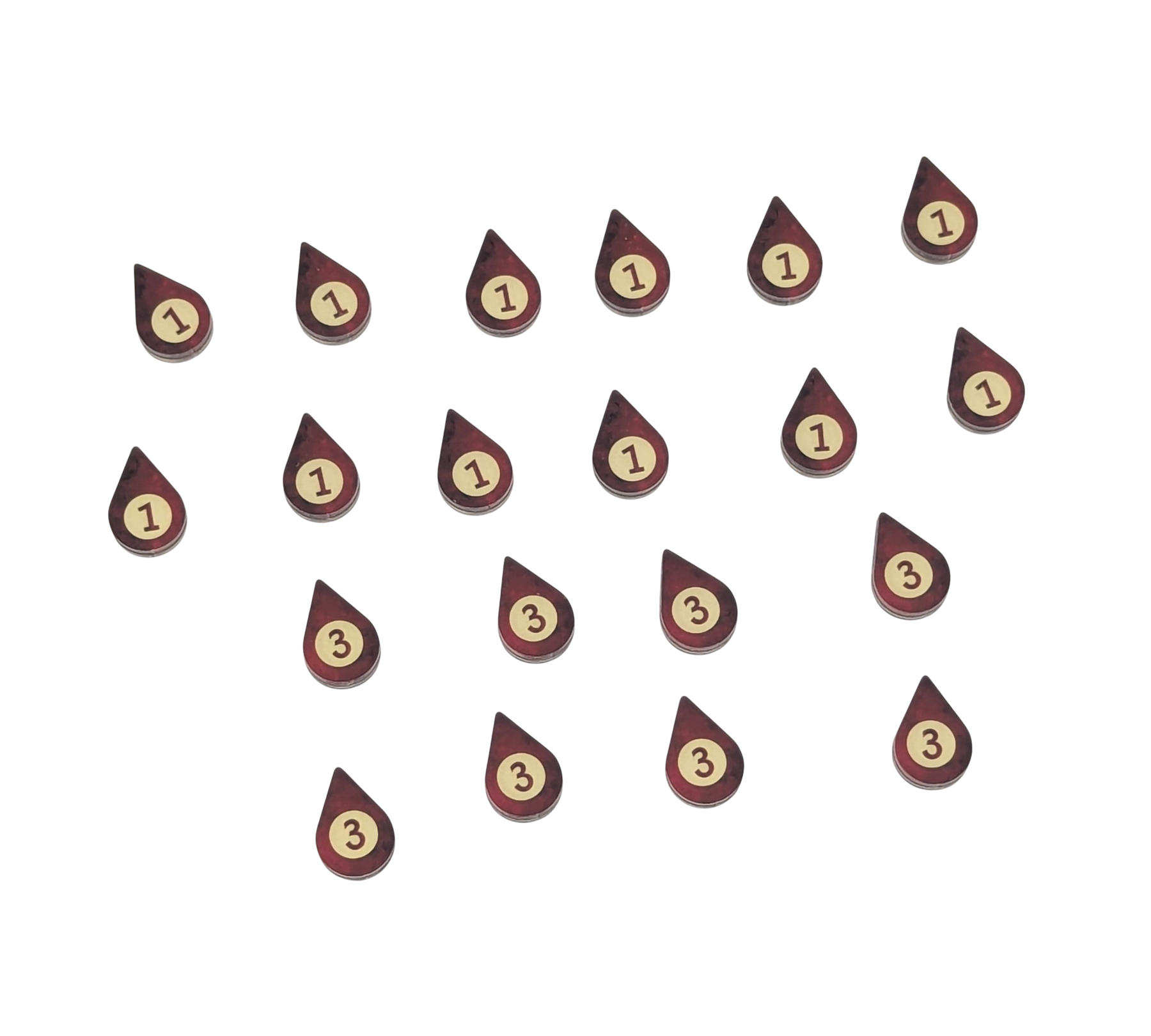 Tokens included (Tear Drop, 15mm tall x 10mm wide)