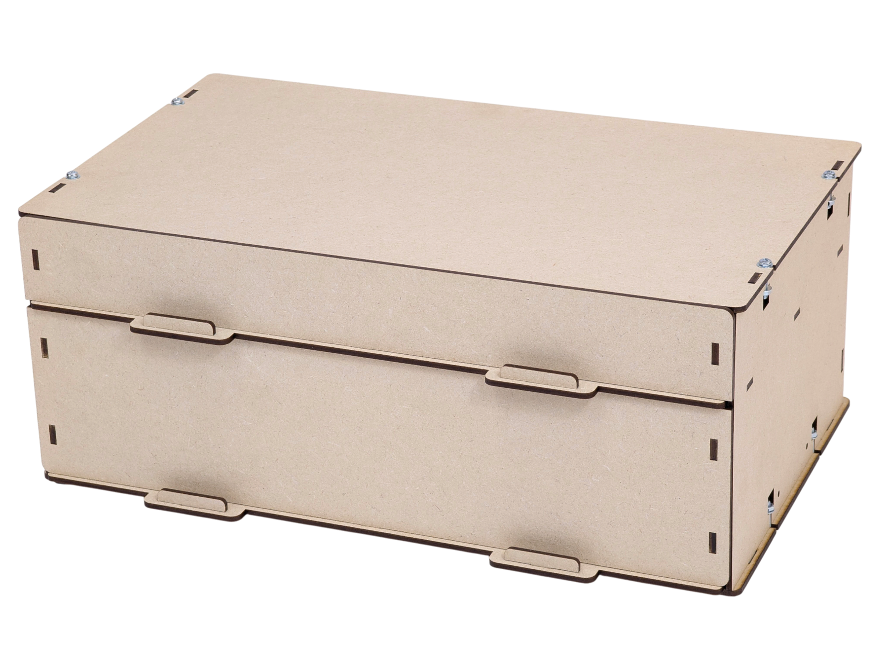 Construction Material: Medium Density Fibre Board. MDF is dense, flat, and stiff, with no knots like those in grained plywood. Its fine particles provide dimensional stability without a predominant "grain" (as in lumber). Unlike most plywood, MDF contains no voids and delivers crisp edges.