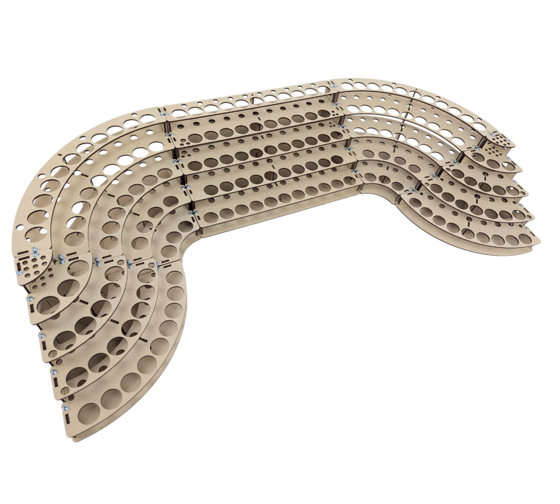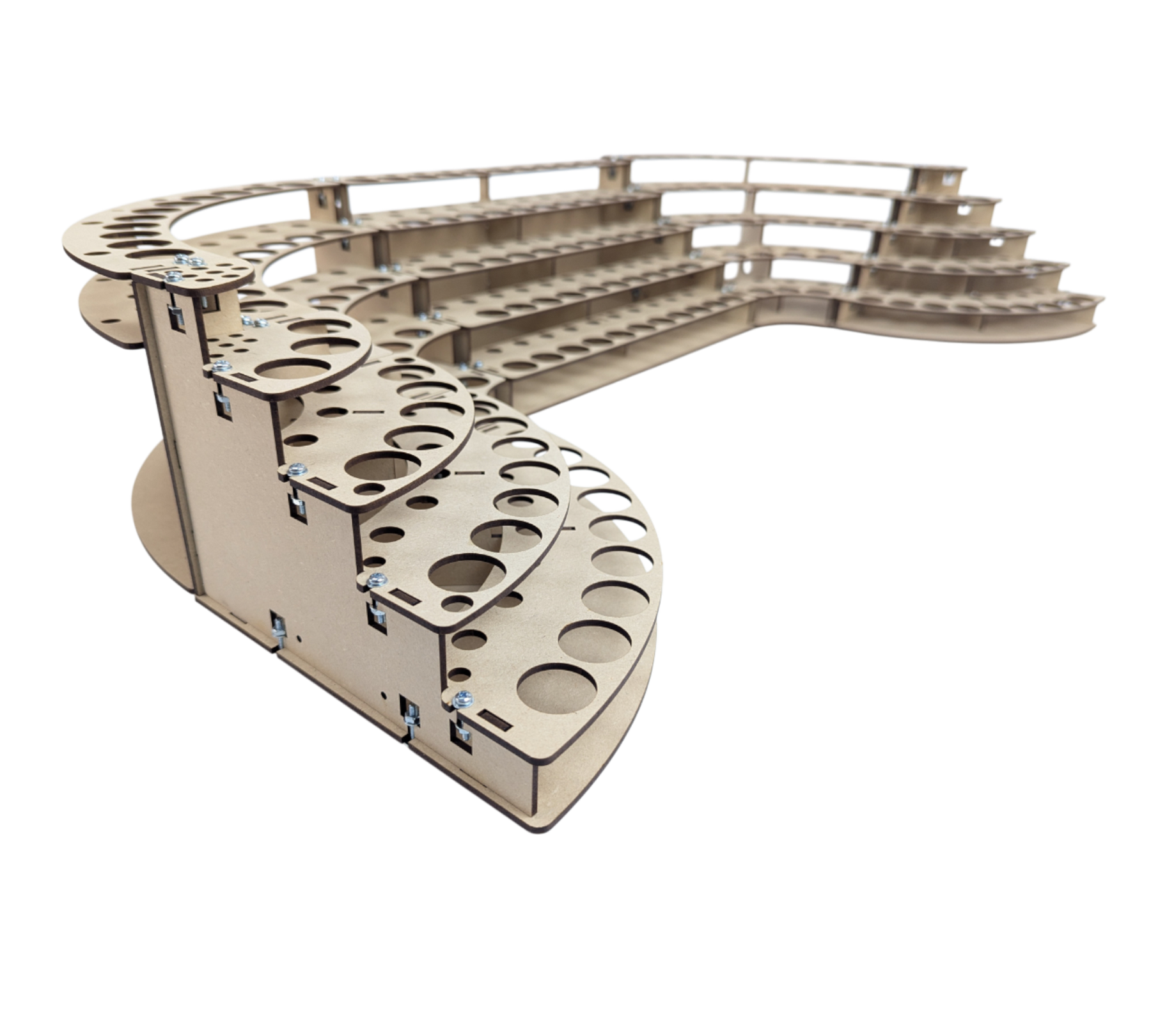 The Rack: Paint Pack. A superb way to stay organised. A set of 5 modular units to get your hobby space area started. Perfect for the avid painter. Combining the 5 units, you will have enough room for up to 171 paints, depending on the brand.