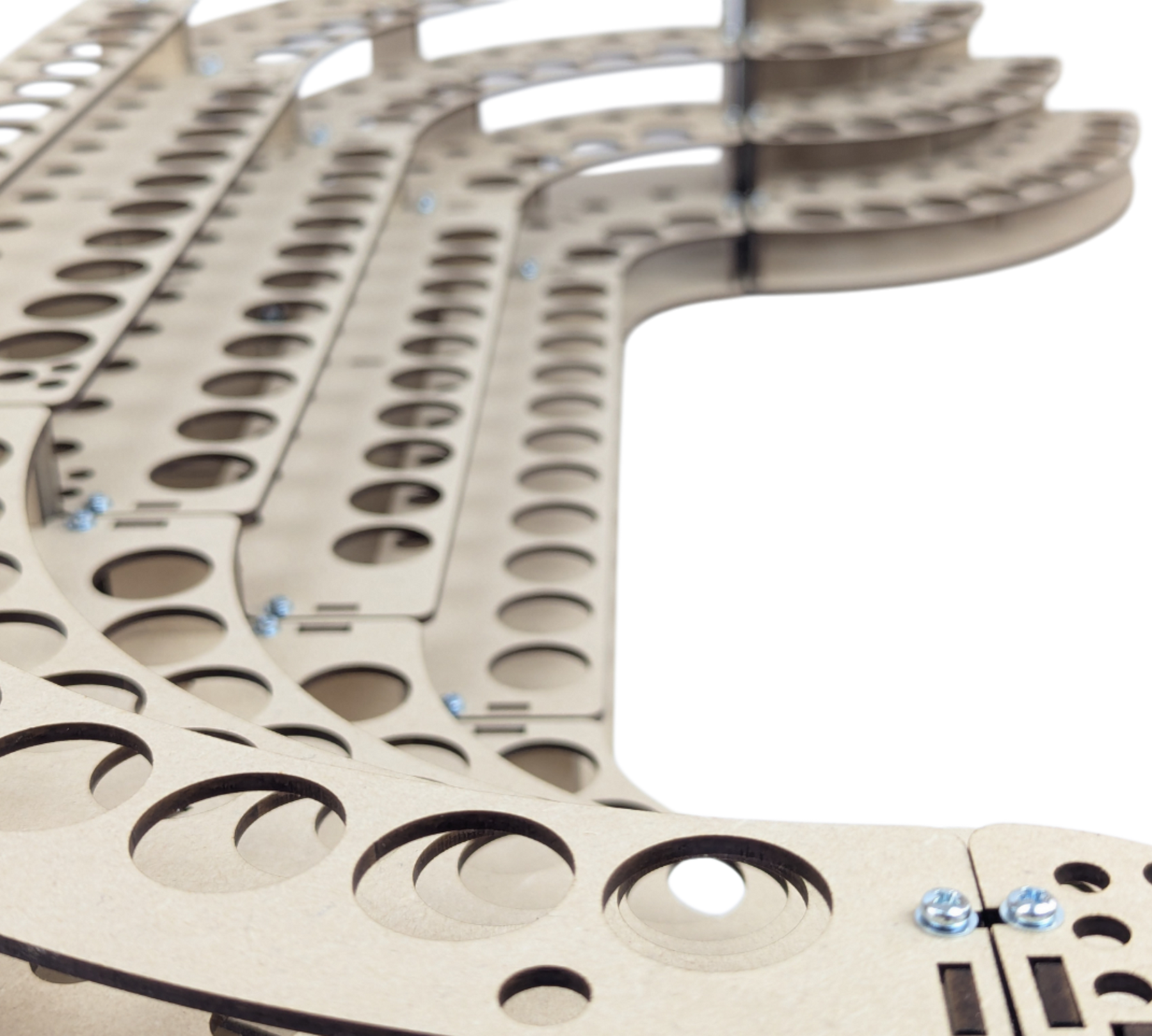Please note: All MDF parts are supplied with a mask layer on the front and rear surfaces. These layers should be removed before assembly. The mask will remove any unsightly burn marks from the MDF, leaving you with a clean, crisp finish as pictured here.